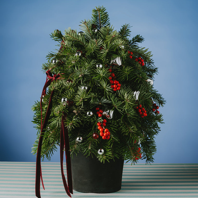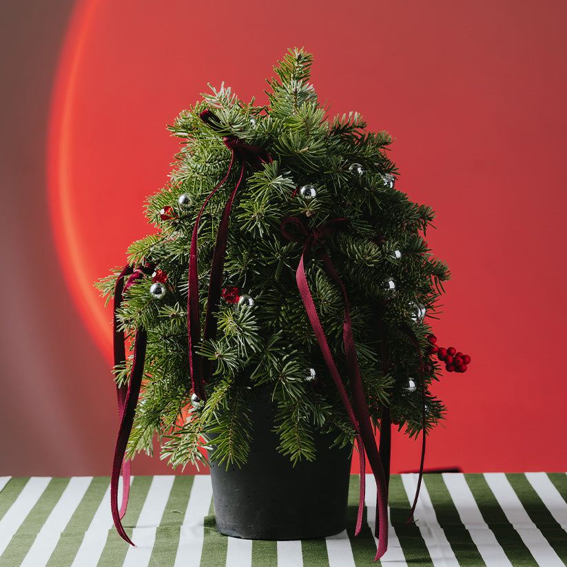 Mis kokulu çam dalları, yılbaşı ruhunu eve usulca taşıyan kırmızı süsler ve kurdeleler ile hazırlanmış sıcacık bir aranjman. Boyu küçük ama etkisi büyük, bulunduğu yeri anında kutlama moduna alacak!