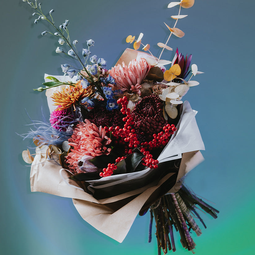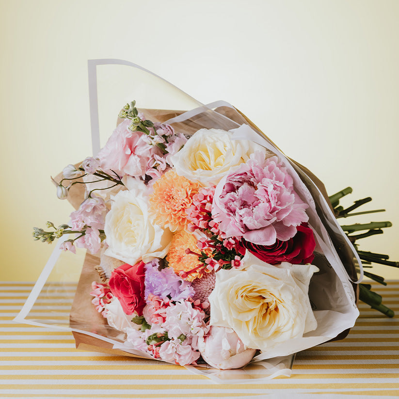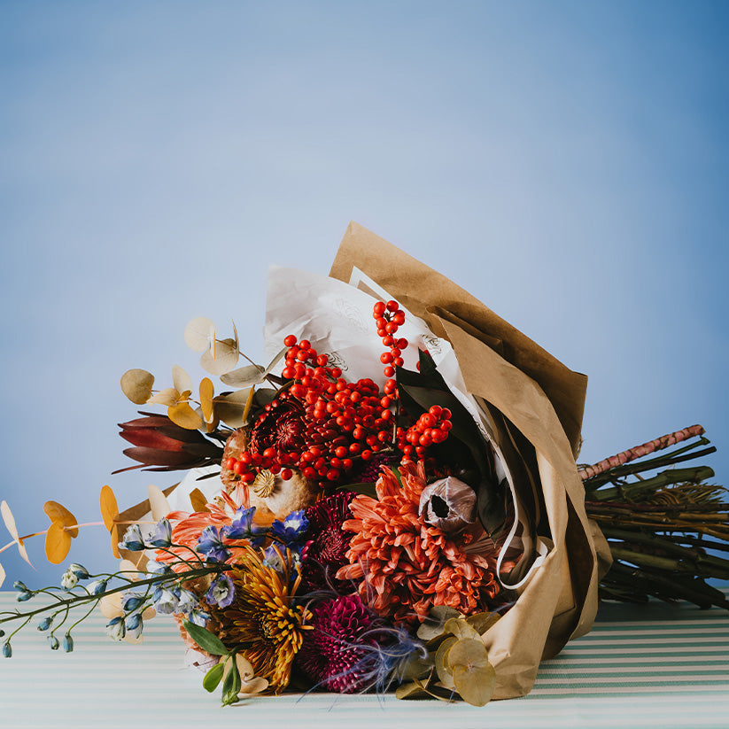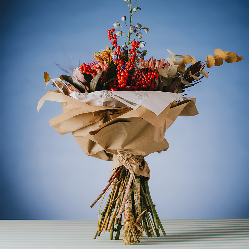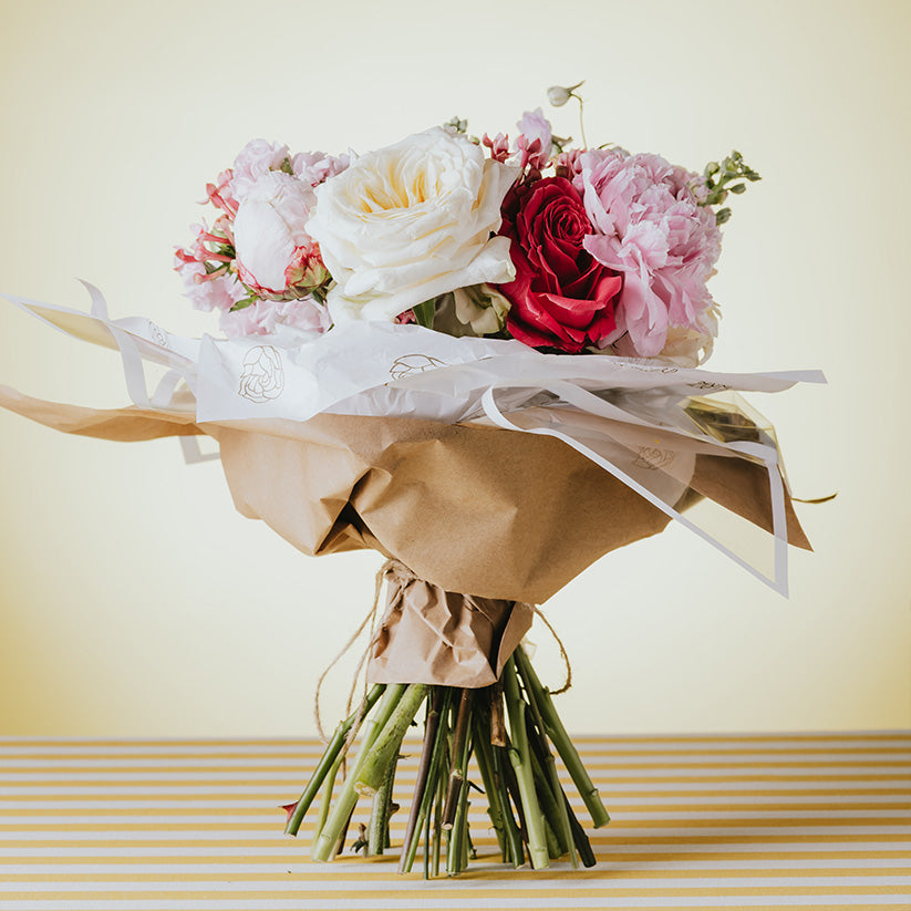 Sunday'de bugün ne varsa buketi! Tezgahtan taze taze, renkli, alıcısını sarıp sarmalayacak bir demet sürpriz güzellik! Sunday logolu pelur kağıda ve kraft kağıda sarılarak hazırlanır.